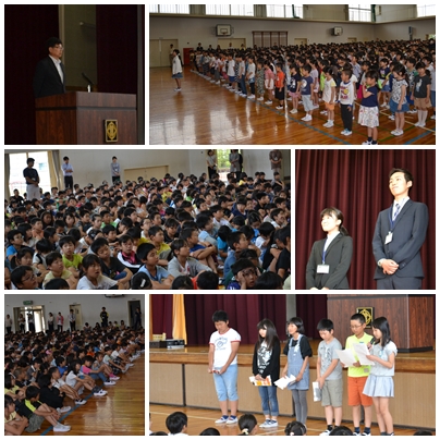 全校朝礼で校長先生から、教育実習のお兄さん先生、お姉さん先生の紹介がありました。3年1組さん、5年3組さんを中心に、よろしくお願いしますね。