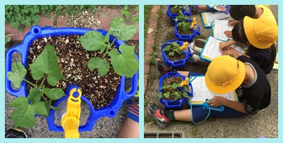 日に日にどんどん成長していくあさがおを眺め、子どもたちもとても嬉しそうです。