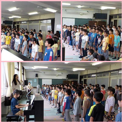 学年音楽で「小さな勇気」を合唱しました。どのクラスも毎朝練習している曲です。メロディーに気持ちを乗せ、二部合唱の歌声を響かせることができました。