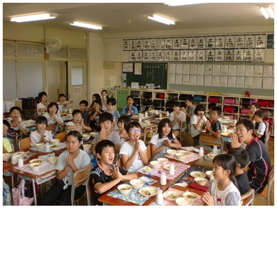 給食で出されるご飯は、岩倉市や周辺の市町でとれたお米です。お茶碗1杯には何粒ほどのお米が入っているかわかりますか。3000粒程だそうです。これは、稲穂3株分にあたります。日本人は昔から、お米を大切にしてきていますね。感謝していただきましょう。