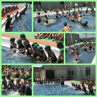 今日の1・2時間目にプールに入りました。碁石拾いを行いました。学級対抗で大いに盛り上がりました。楽しく元気に水泳の授業ができそうです。