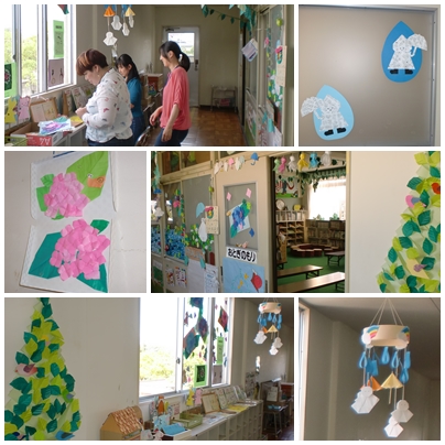 ラビットさんが2つの図書室を今の季節に模様替えしてくださいました。雨で外に出られないときは本を楽しみたいですね。「晴耕雨読」の季節です。