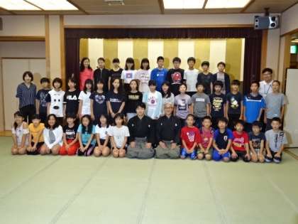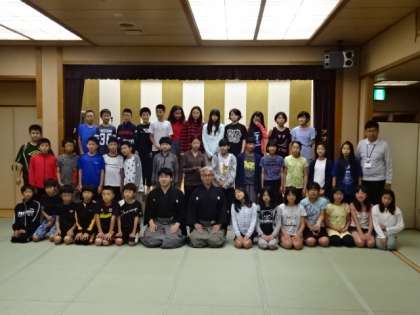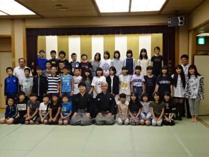 狂言師の方とクラスごとに記念写真を撮りました。
