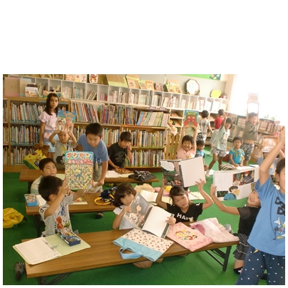 4組さんの様子です。おとぎの森(低学年図書館)へ行き、本を借りました。みんな本の大好きなおりこうさんばかりです。
