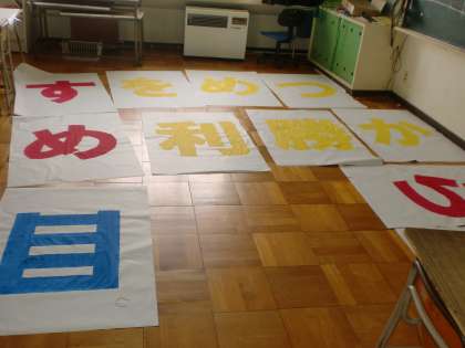 児童会室に作り途中のスローガンがありました。代表委員とその仲間たちが空いた時間を使って作り進めてくれています。目立った活動ではありませんが、コツコツと支えてくれる子たちがいます。感謝しています。ありがとう。