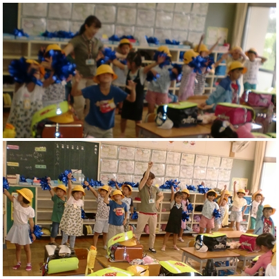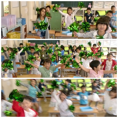 運動会の演技「その☆バブリー」で使います。曲が流れると、みんな元気よく踊り出しました。みんなノリノリです。