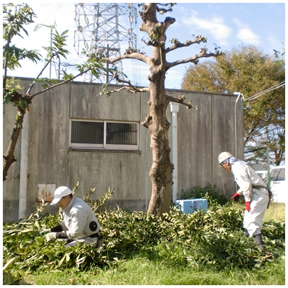 シルバーさんが樹木の剪定をして下さいました。さっぱりしました。