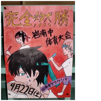 明日は岩倉南部中の体育大会が行われます。天気が心配されますので、詳細は南部中のホームページをご覧ください。いろいろなリレーや応援合戦が大変盛り上がります。南中生の一生懸命に取り組む様子を応援ください。