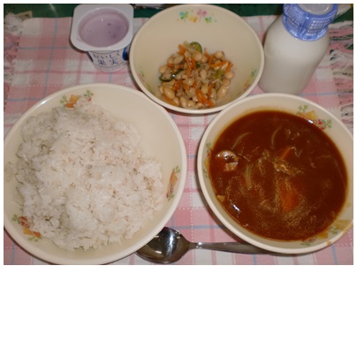 10月10日は「目の愛護デー」です。10と10を横にすると、人の顔の眉毛と目に見えることから、この日になったそうです。曽野小のみなさんは読書や勉強をたくさんして目が疲れていると思います。ゲームや携帯、テレビを見続けて目を疲れさせている子は少ないですよね。今日は目の疲労回復のために、きのこや豆類、ブルーベリーが献立に入っていますよ。