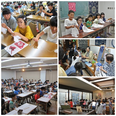 有松・鳴海絞り会館では、鳴海絞りが出来上がるまでの様子を映像や展示等で説明していただきました。また全員が4つの種類に別れて絞り体験をしました。後日、染色されたものが届く予定です。楽しみにしていてくださいね。