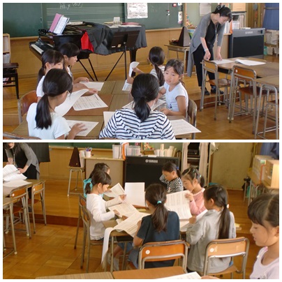 3年生の伴奏希望者が楽譜を受け取り、説明を受けました。家庭での練習がほとんどになると思いますが、希望してくれてありがとう。