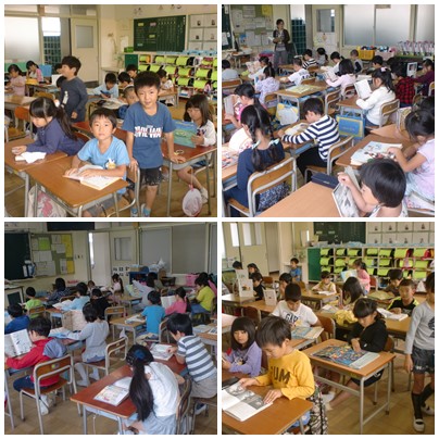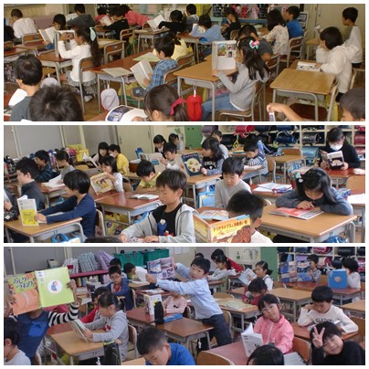 上の写真は1年生、下は2年生です。全員が本を読んでいるので、教室は静寂です。