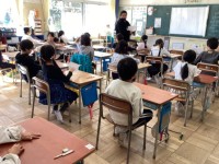 卒業式や入学式には、今日作った輪飾りで体育館が彩られます。