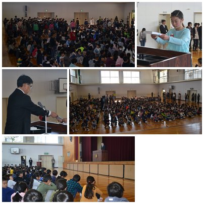 校長先生からは「リーダーはみんなのことを考える。」「リーダーとして高学年ががんばる。」「リーダーを助けることは1年生からがんばれる。」の話がありました。