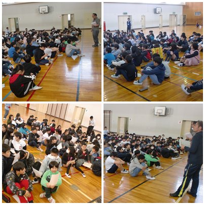 通学班の班長、副班長、中班長が集まり、登下校の安全確認を行いました。班員の安全のために力をかしてくださいね。