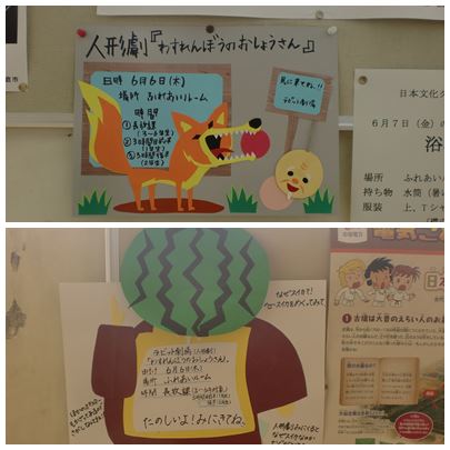ラビットさんが人形劇を上演してくださいます。その案内です。楽しいしかけもあります。見つけたらのぞいてみてくださいね。