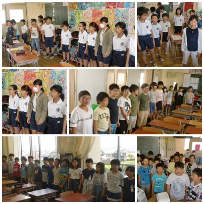 今朝3〜6年生の合唱練習の様子です。高学年ほど各パートで音とりをがんばっています。