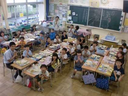 今日の給食学級写真は1の3さんです。