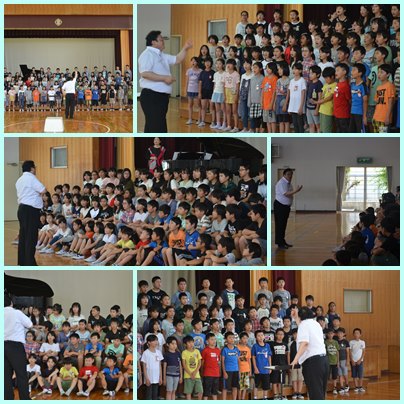 横隔膜の使い方と、気持ちをこめた歌い方……言葉にすると難しそうですが、子どもたちにもわかりやすいように、手や体全体を使って、教えていただきました。