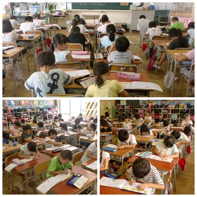 2組さんが漢字ドリルに取り組んでいます。真剣です。