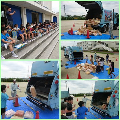 生活の中で出たゴミの分別の仕方や、パッカー車にゴミを入れる体験をさせていただきました。