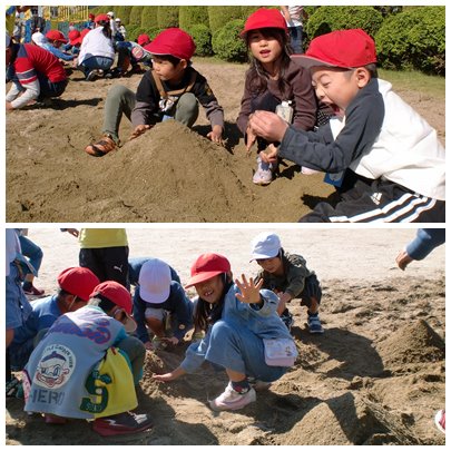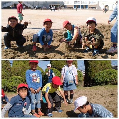 走り幅跳びの学習のため、砂場を掘り起こしました。1年生は「がっこうにすなばがあったんだ。」「すなあそびひさしぶり」と楽しみました。