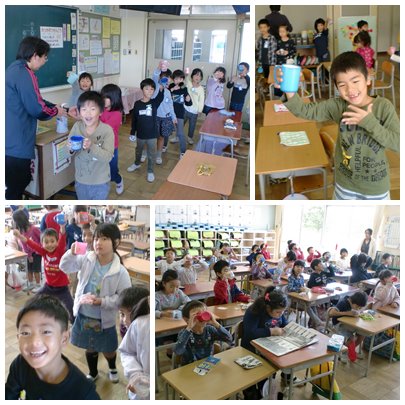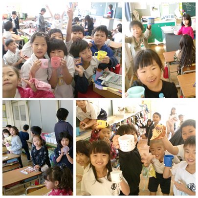 金曜日の朝、1〜3年生の希望者はフッ化物液でうがいをしています。