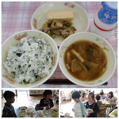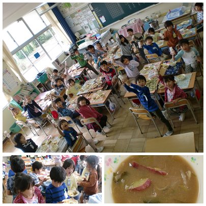 「秋」は食材が豊富になりますね。みなさんが好きな秋の食べ物(野菜、果物、魚)は何ですか。今日はみそ汁に「さつまいも」、ふきよせ煮に「栗」が入っていました。今の季節「秋」を、楽しくおいしくいただきましょうね。