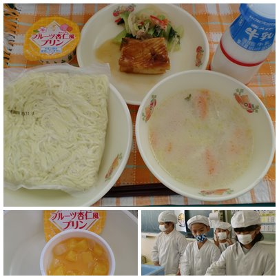 とんこつらーめん いかの香味だれかけ 大根の中華あえ フルーツ杏仁
