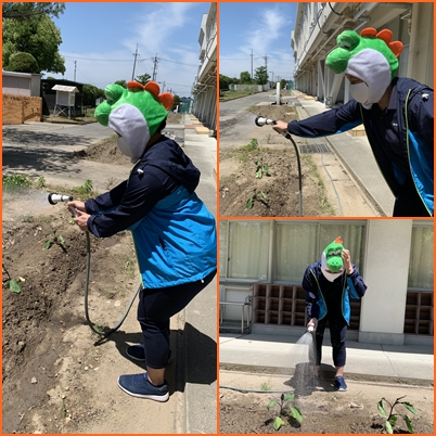 暑い日が続いています。野菜たちもちょっとバテ気味で、先生たちも心配です。