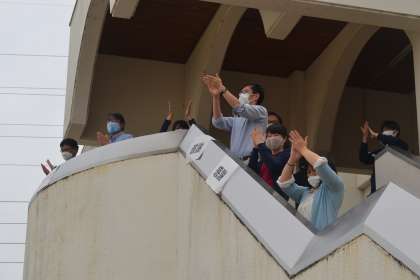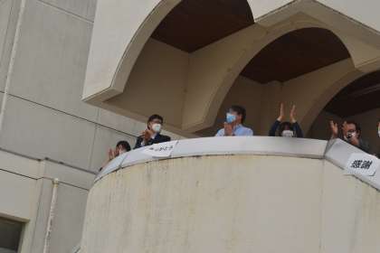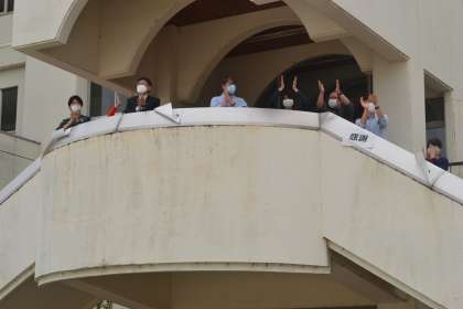 まだ少し慣れない様子だった先週とは違い、今週は「ありがとー!!」「がんばれー!!」の声とともに、医療に携わる人々、そして今日も自宅でがんばっている曽野小のみんなに向けて、拍手をしました。あと少し、みんながんばろう!!