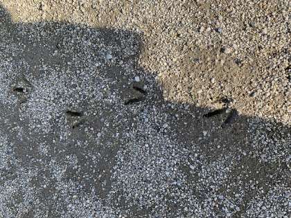 日曜日に学校に訪れると、校庭に待ち遠しくて早めの分散登校をしていた子?の足跡を見つけました☆これは誰の足跡かな?