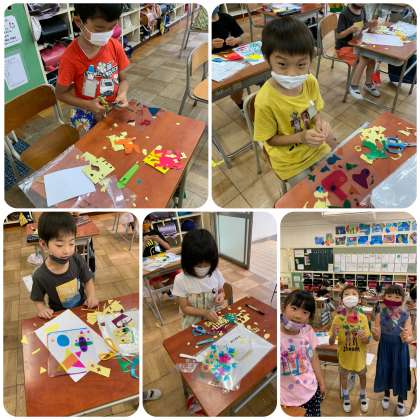 そんな暑さを少しでも和らげるために、図工ではセロハンを使ったうちわを作成しています(^^)