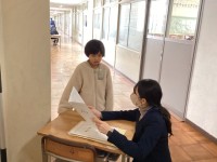 クラブ活動で投扇興を行いました。扇子を投げてスズが落ちた様子で得点を競います。この日は、とても珍しい得点が出ました。扇子がスズにあったものの落ちずに台の上に倒れ、扇子は台に立てかかるということがおこりました!! みんなが0点や1点の中、この形は何と6点!! 珍しい形に嶋先生も思わず写メしました。