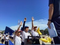 6年生が1年生の小さな手を握って登校する様子が印象的でした。
