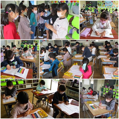 きれいに削ってある鉛筆を使って、初めての名前書きに挑戦したクラスもあります。