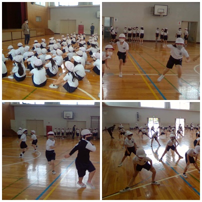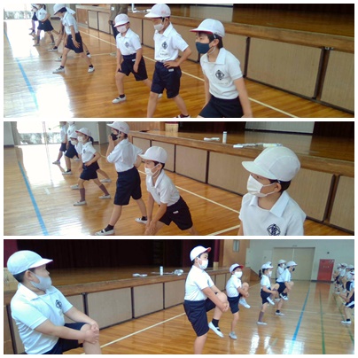 今日は,初めての学年体育を行いました。体育の前に,学年目標「きずな」の確認をしました。これからの姿を楽しみにしています。体育では,整列や準備運動,様々な走り方に取り組みました。体育係さん大活躍でしたね。