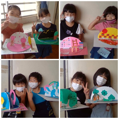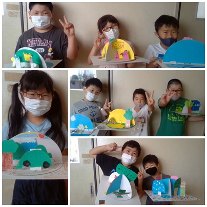 3組の図画工作で、くるくるランドが完成しました。