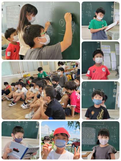 算数では、ひっ算の学習をしています。計算が大好きな子どもたち。「できたー!!」の笑顔がとってもすてきです。