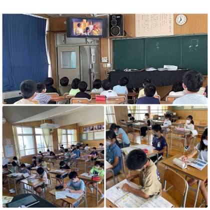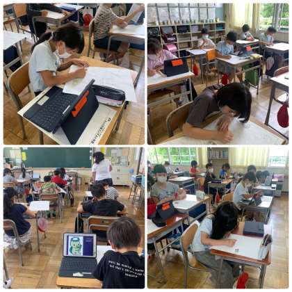 1組は音楽、2組は書写、3組は図工です。それぞれの教室で真剣に授業を受けています(^^)