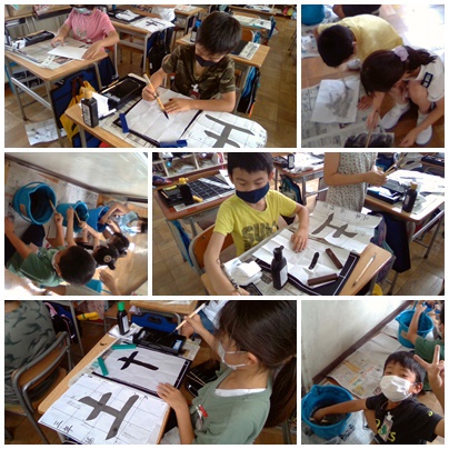 3組は,書写で「土」を書いています。準備,片付けが早くなってきましたね。のびのびと書いていました。