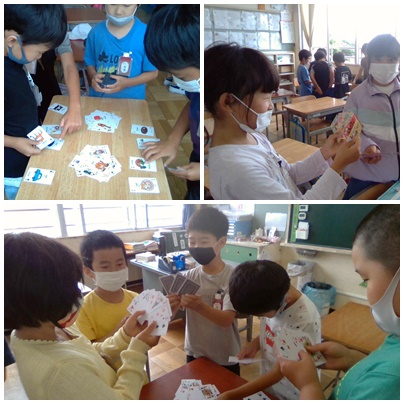 今日は久しぶりに雨でしたね。トランプを使って楽しく過ごせましたね。生活リズムチェックに向けて,栄養素のお話を聞きました。レンジャーの名前や得意技を教えてもらいましたね。