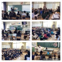 学校の周りの田んぼも稲刈りが終わり、白サギが1羽