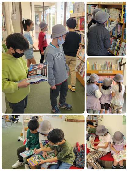 好天に恵まれた校外学習。図書館で本を借りたり、公園で元気いっぱい遊んだり、笑顔いっぱいの半日になりました。