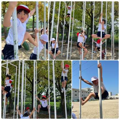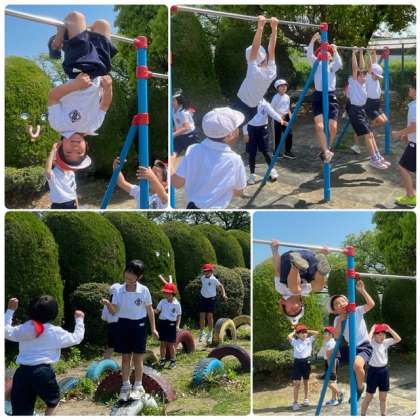 遊具で思い切り身体を動かしました。大人にはとてもできない動きの連続です。負けてはいられない…。