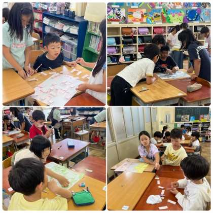 学活の時間に、みんなで「マネキンチャレンジ」や「大根抜き」などのゲームをして遊びました。人と関わる楽しさ、協力する良さを味わってくれたらと思います。