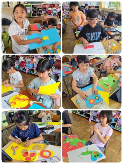色画用紙を使って、思い思いの絵や風景を表現していました。