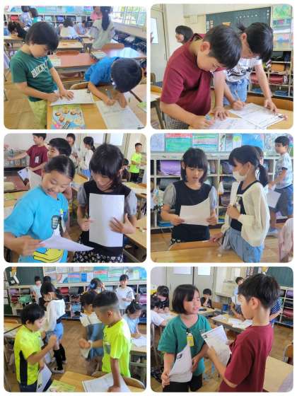 今日のゲームは「How many strokes?」好きな漢字と画数をつたえるゲームでみんなと交流しました。