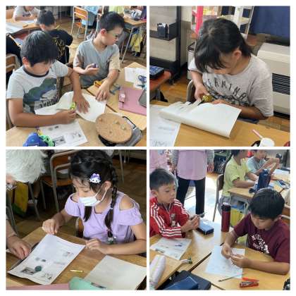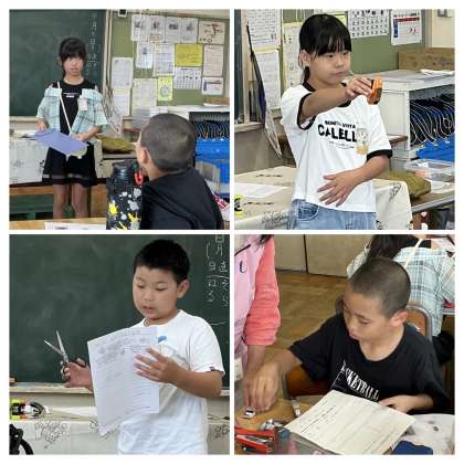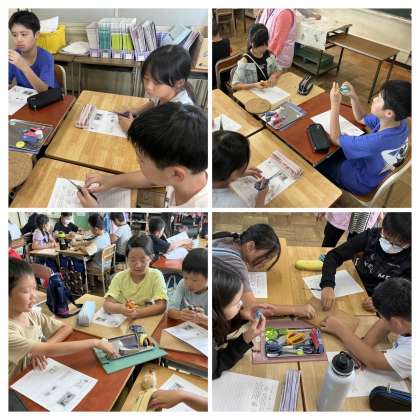 岩倉市のユニバーサルデザイン研究会の方々に来ていただき、ユニバーサルデザインについて教えていただきました。文房具をいろいろ使ってみました。目の不自由な人、力が弱い人、手の大きい人。自分たちもみんなも使いやすいものだということを体感しました。