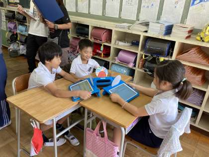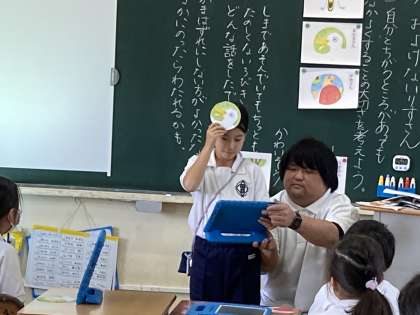 「およげないりすさん」のお話から、かめさん、あひるさん、白鳥さんそれぞれの役を演じることで、自分と違うところがあっても仲良くする大切さを考えました。